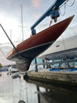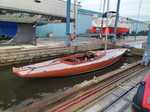 Doomernik went on to build a number of race dragons after restoring this one. The restoration entailed a.o. splining it so it’s in effect a mono hull now, replacing the bottom half of the keelbalk by new timber, and renewing the keel bolts and rebuilding the deck. The hull is Varnished not epoxied.